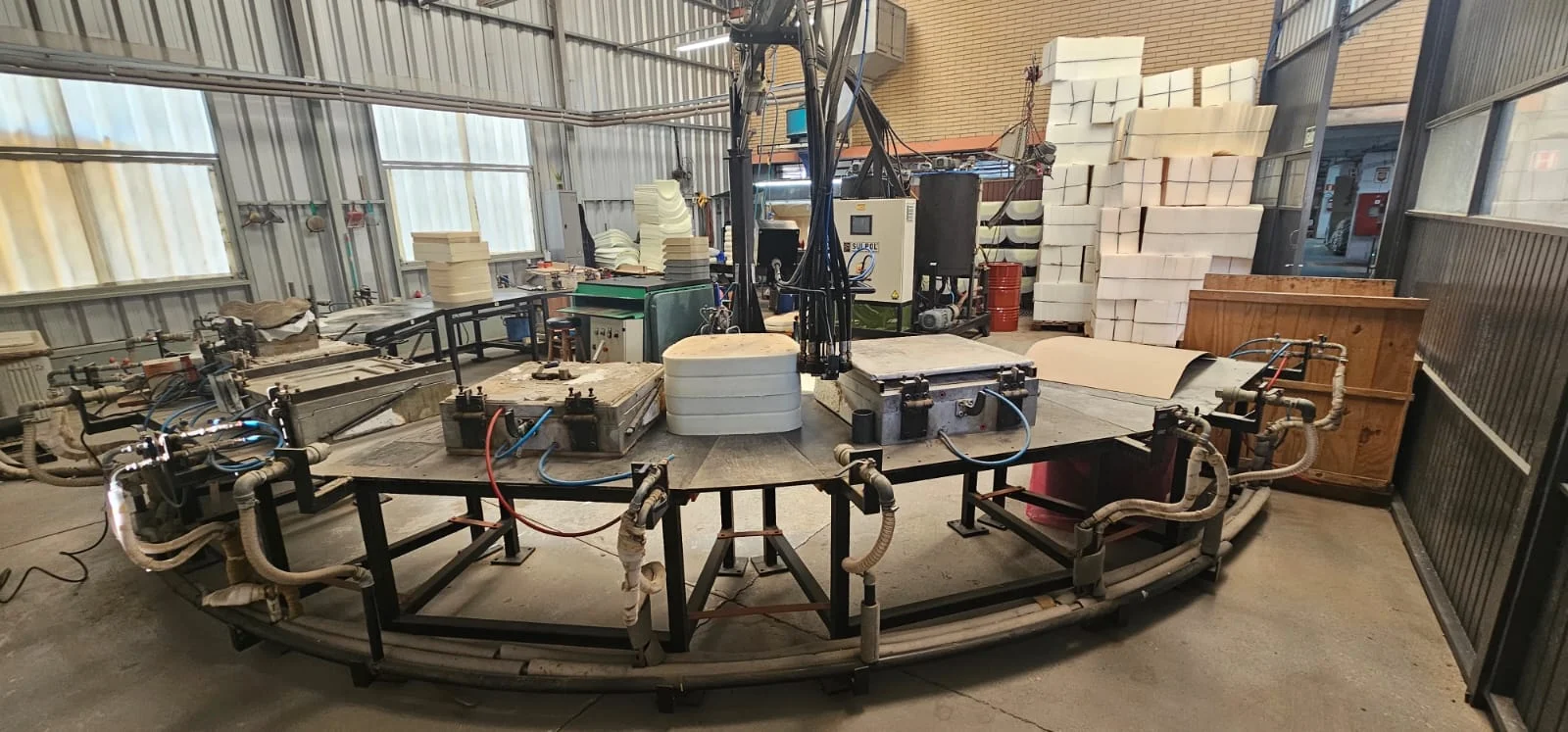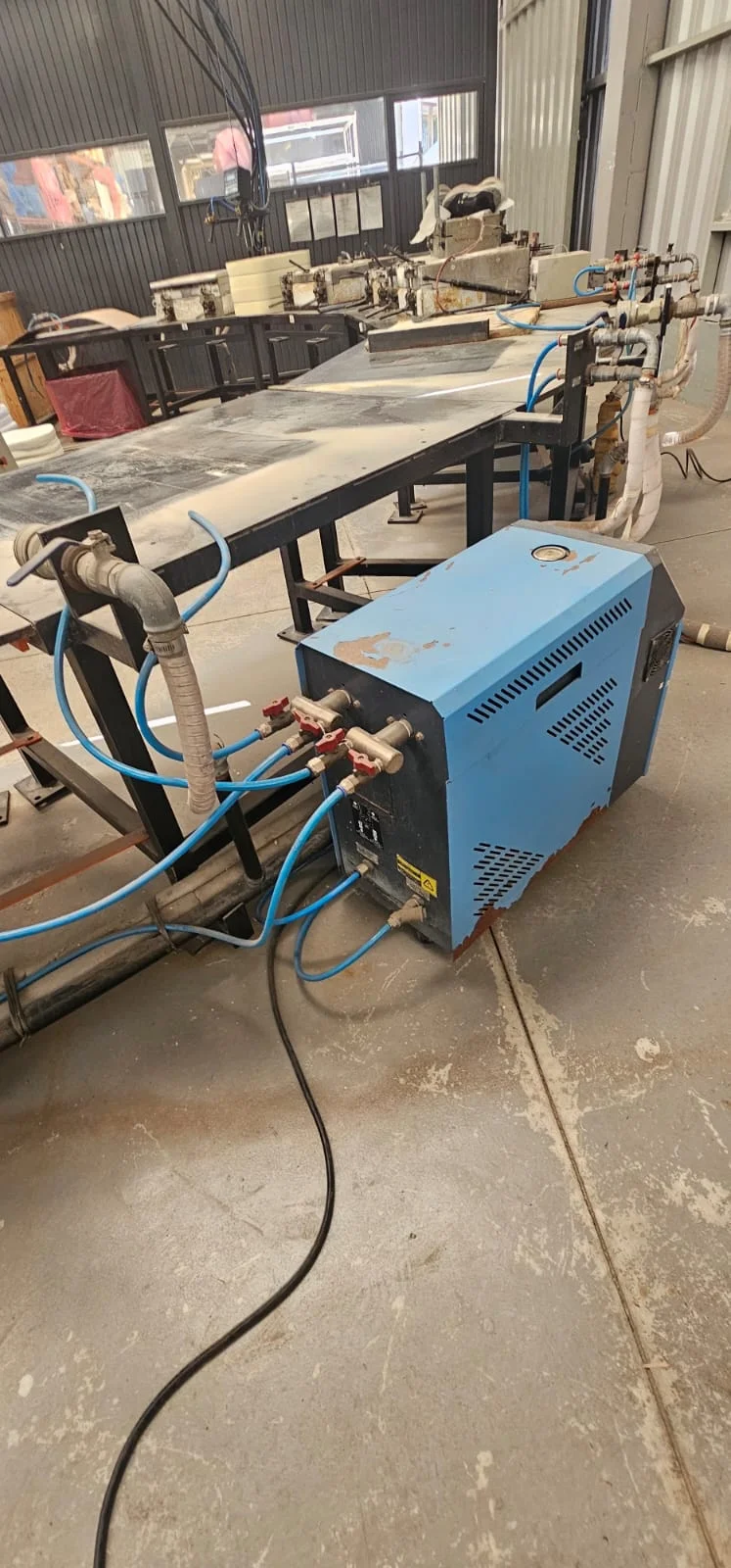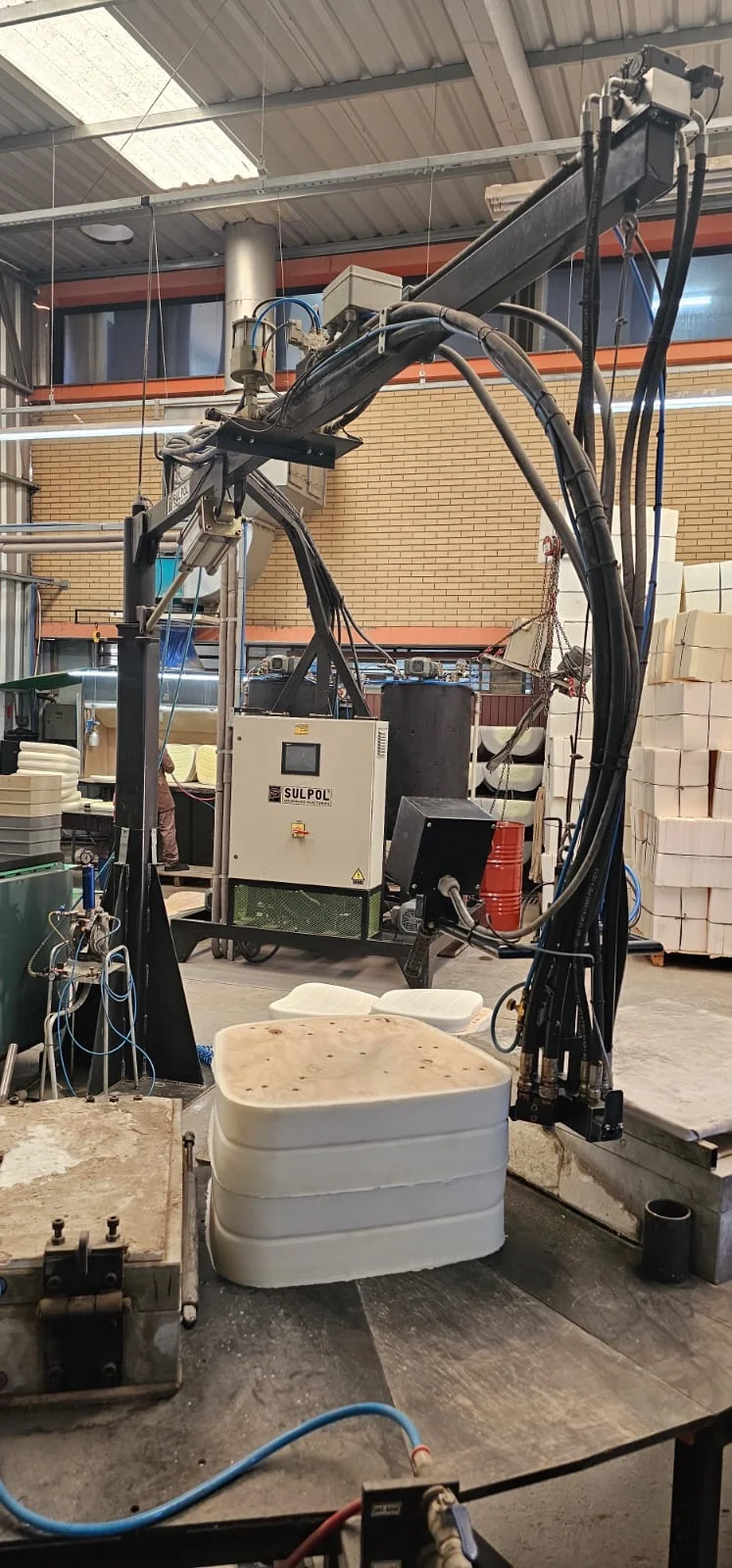 Equipamento industrial para aplicação e processamento de poliuretano em alta pressão COMPLETO, com prensa, termorregulador, shiller, mesa e demais perifericos, ideal para operações que exigem desempenho, robustez e confiabilidade no processo produtivo.